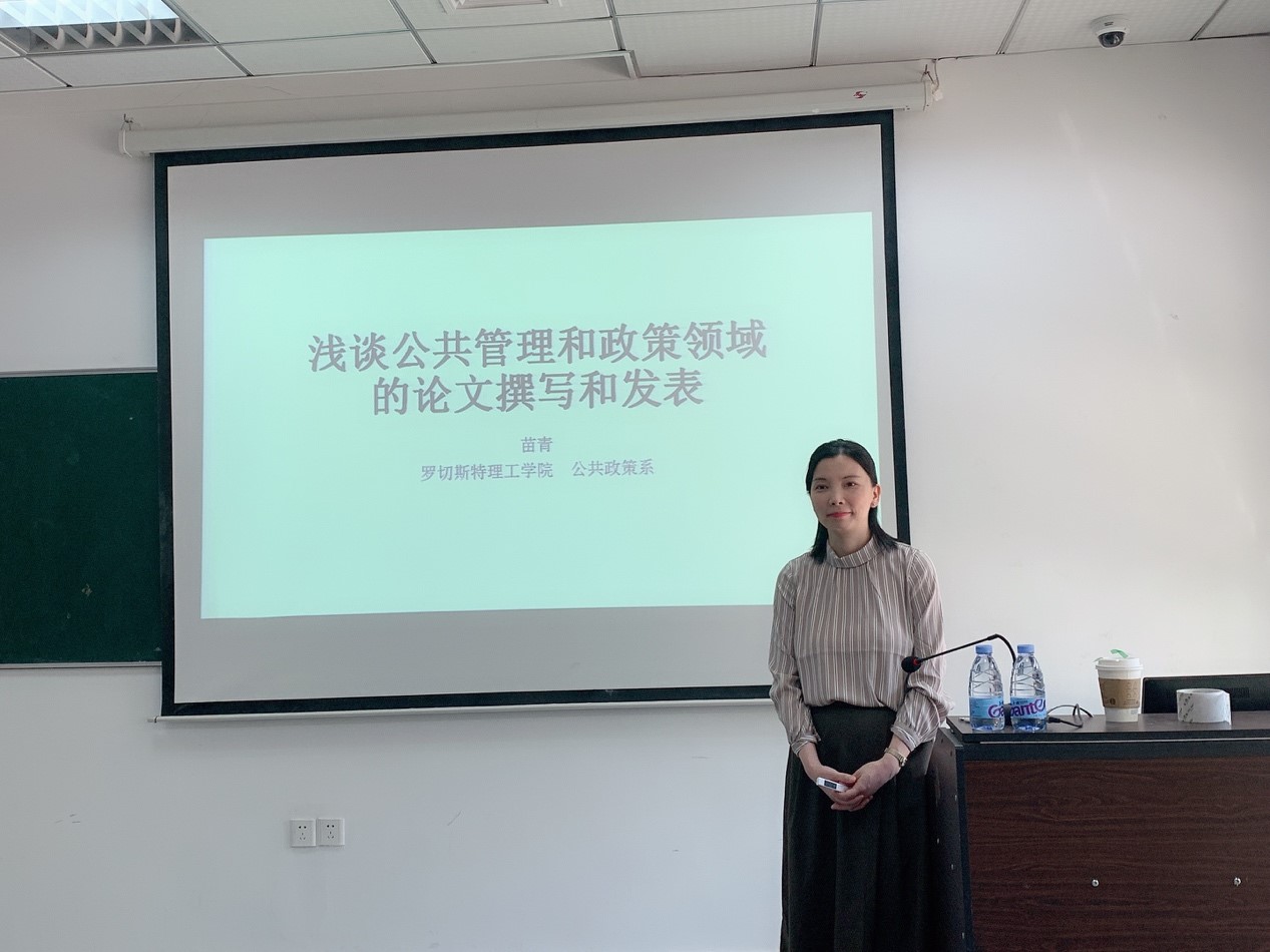(通讯员,程晨)2019年4月16-17日,美国罗彻斯特理工学院公共政策系助理教授苗青博士应邀来到我院,为全院师生举行了两场精彩的学术讲座。张毅教授、陈诚副教授先后主持学术讲座,我院博士生、硕士生以及部分高年级本科生参加了此次系列学术讲座。