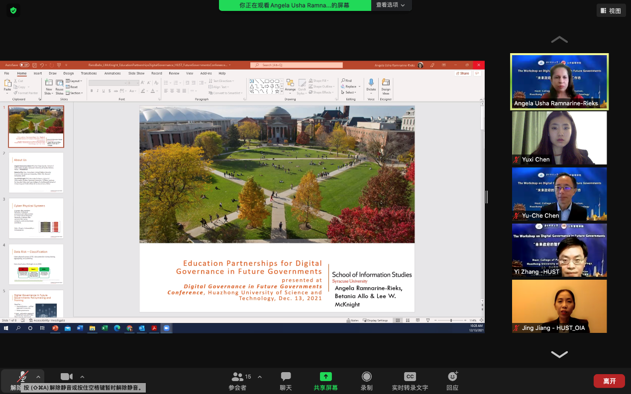 本次会议出席人员包括我校国际交流处副处长江静、WilliamHill威廉希尔常务副院长张毅教授、内布拉斯加大学奥马哈分校公共事务和社区服务学院和数字治理分析实验室主任Yu-che Chen教授、雪城大学马克斯维尔公民与公共事务学院自动系统政策研究所主任Jamie Winders教授、雪城大学信息学院Angela Usha Ramnarine-Rieks教授,以及多名相关领域的教师和研究生。会议由内布拉斯加大学奥马哈分校Yu-che Chen教授和我校张毅教授共同主持。