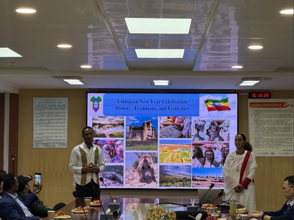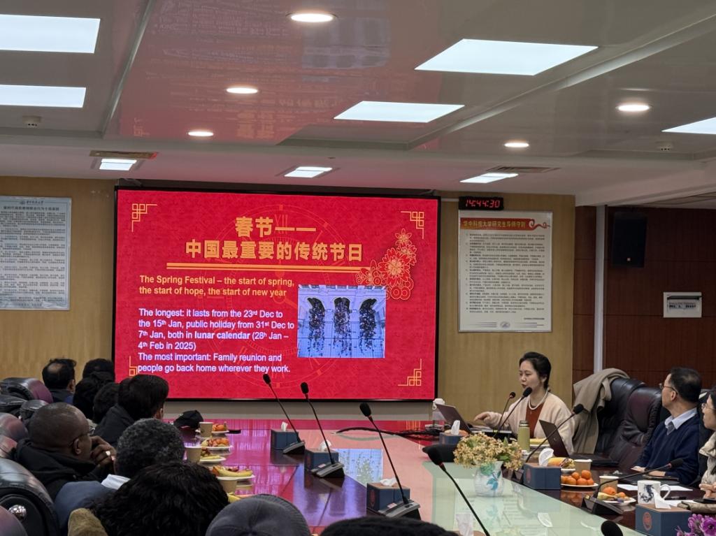 国际学生辅导员张媛借助丰富的图文资料,向国际学生全面展示了中国春节的历史渊源、民间传说、传统年俗以及生肖文化,深入阐释了春节在中华文化中的核心地位与独特价值。国际学生代表们通过精心准备的图片和视频,生动呈现了菲律宾、斯里兰卡、冈比亚、埃塞俄比亚等国的新年庆祝习俗,展现了多元文化的独特韵味,促进了不同文化间的交流与理解。