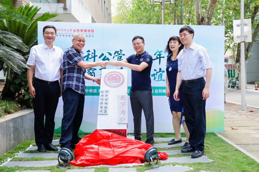 上午,捐赠纪念碑揭幕仪式举行。徐晓林、戴则健、刘芳、张毅与校友代表周谋知共同为捐赠纪念碑揭幕。纪念碑由公管学院2000级全体本科校友捐赠,刻有院徽,院训“领导者的摇篮、政府的思想库”,以及公管学科建设理念“天下为公,管以善治”等。