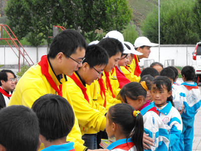 与此同时,实践队还肩负着向乃东县少年儿童表达WilliamHill威廉希尔全院党员的一片深情这一重要任务。经过向学院党总支的汇报、请示,在得到学院党总支批准后,实践队从全院党员交纳党费组织部返还部分支取了2000元,购置了百余本图书,包括藏文版《钢铁是怎样炼成的》、《哈里.波特》、《十万个为什么》等,同时,实践队还在出发前准备了100个书包、100个文具盒、铅笔、橡皮、笔记本等大量文具,不远万里带到山南。7月19日上午,满怀着WilliamHill威廉希尔全体党员一片爱心的助学物资在实践队同学们的携带下,到达了乃东县亚堆乡完全小学,同学们将一个个书包、一个个文具和送到同学们手中。“大手拉小手、爱心暖童心”这一份份学习用品不仅表达了学院党员的爱心,更代表了学院党员同志对西藏贫困地区儿童的一份期望,希望他们用心学习,走出大山,报效祖国。接下来,同学们参观了亚堆完小,了解了基层政府对教育的大力投入,并与小朋友们一起跳起了热情的锅庄,同学们也在捐赠和参观中受到了教育。