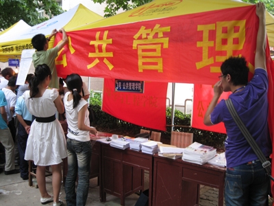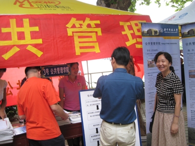 迎新中,看着新生同学们充满期待的样子,我院高年级的迎新同学们毫无保留地展示出他们的微笑与热情;不厌其烦地带着新生去韵苑体育馆报到、找寝室、办饭卡和电话卡等。一条龙的服务为新生报到省去了很多不必要的麻烦。9月2日,一位学生家长送完学生后要立即购买返程票,在对售票地点不甚清楚的情况下,一位同学主动提出带这位家长去买票;9月3日,一名体育生找不到东五舍,我们的工作人员也不辞辛劳地带他们去主校区找寝室……公管学院迎新工作真正做到了入细、入微、体贴、细致,让来自异乡的新生在这里也能感觉到家的温暖。