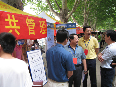9月3日上午,校党委书记朱玉泉教授、校党委副书记欧阳康教授、副校长张晋同志来到我院迎新现场,视察我院2008级新生迎新工作。在听取了学院党总支副书记童文胜对我院迎新组织工作和新生报到情况的简要汇报后,朱书记等校领导给予我院新生迎新工作高度评价。陪同校领导视察的人员有学校办公室常务副主任余津宜、学生工作处处长祝欣等学校各职能部门负责人。
