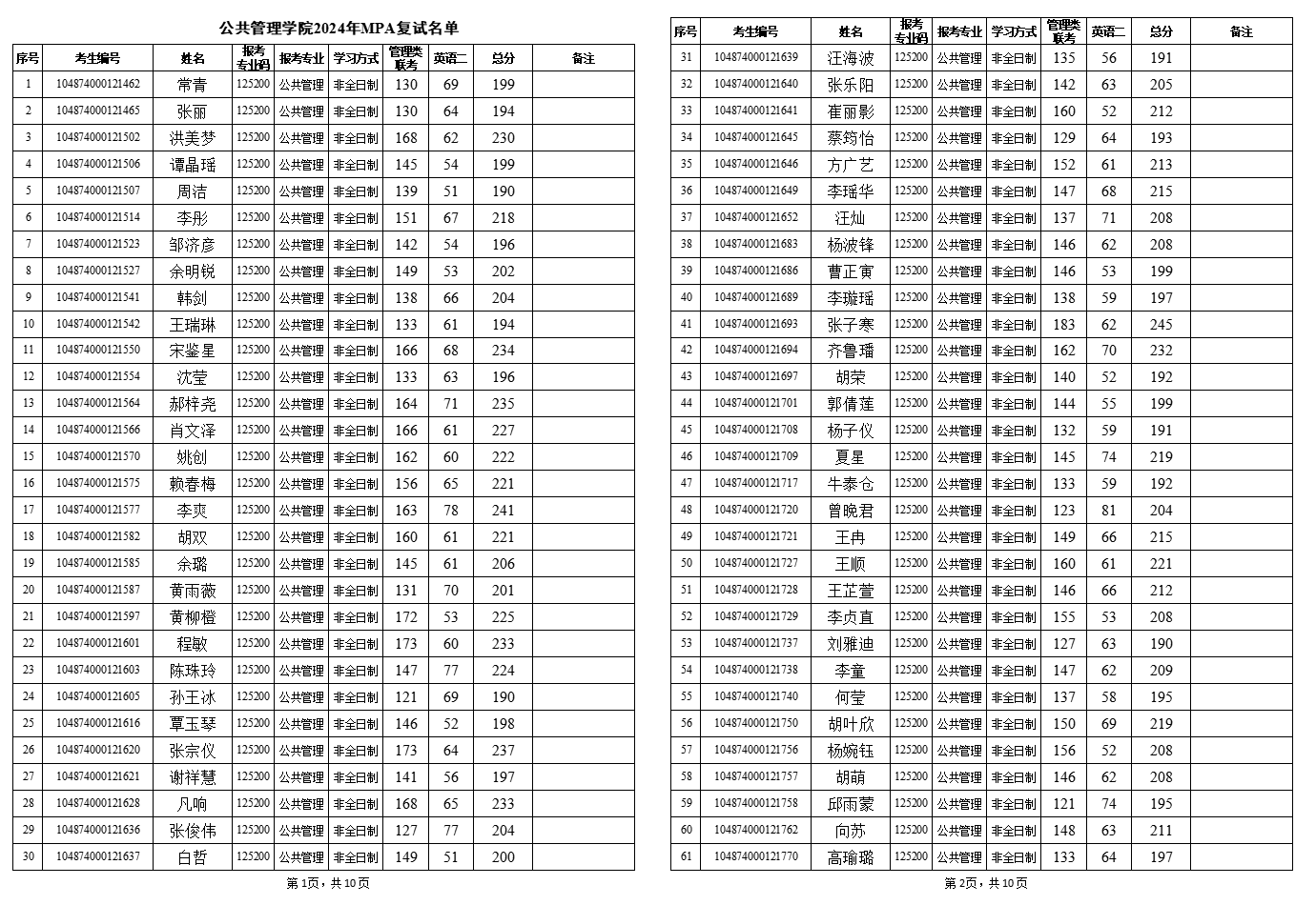 WilliamHill威廉希尔2024年MPA(专业型硕士)复试名单