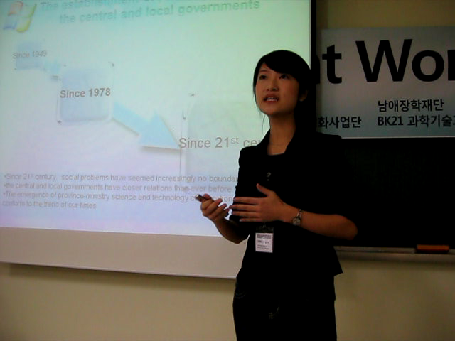 我院博士生曾婧婧提交的论文《The Evolution of Province-Ministry Science and Technology Cooperation: from National Science and Technology Management to National—Regional Science and Technology Governance》及会议发言引起代表的浓厚兴趣,在会议讨论中,曾婧婧的论题“科技治理”亦成为代表们提问的焦点。曾婧婧的沉着表现与机智应对给与会学者留下了深刻印象。会后,福布莱特主席团高级院士,韩国科学院SONG Sang-yong教授对曾婧婧给予了好评。东京大学福布莱特学者Kevin Takashi Fujitani邀请曾婧婧参加2010年在东京大学举办的Society for Social Study of Science学术会议。