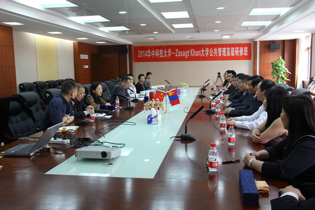 徐晓林院长对为期一周的公共管理高级研修班学习情况进行了总结并对此次研修班所取得的成果给予了高度的评价。他表示我院愿以此次的学习交流活动作为双方合作的起点,并向蒙方传达了关于进一步推动双方合作交流的意愿,合作重点则集中在中蒙的电子政务方向。谭术魁副院长对我校及我院公共管理一级学科在全国的排名情况进行了介绍,并对我院的具体学科设置情况、师资队伍、招生情况以及软硬件设施情况等向蒙方进行了集中说明。蒙古Zasagt Khan(扎斯格图汗)大学校长首先对我院在研修班期间提供的各项帮助表达了诚挚的谢意,同时向我院介绍了他们大学的办学基本情况、学科设置以及培养机制等,并表达了继续深化合作的强烈愿望。