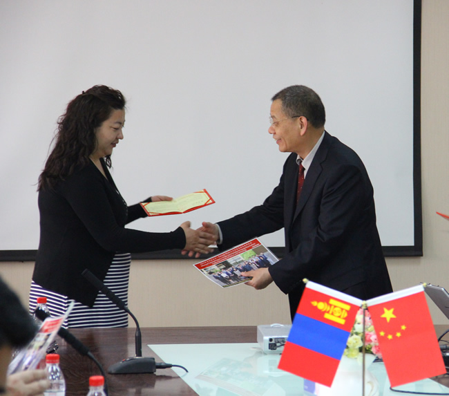 5月13日上午,研修班的结业典礼在我院举行。我校国际教育学院副院长赵晓峰,我院院长、副院长,系主任等以及蒙古Zasagt Khan大学的校长、校董和研究生院院长共同出席了此次结业典礼,并就双方的联合办学等事宜进行了洽谈。