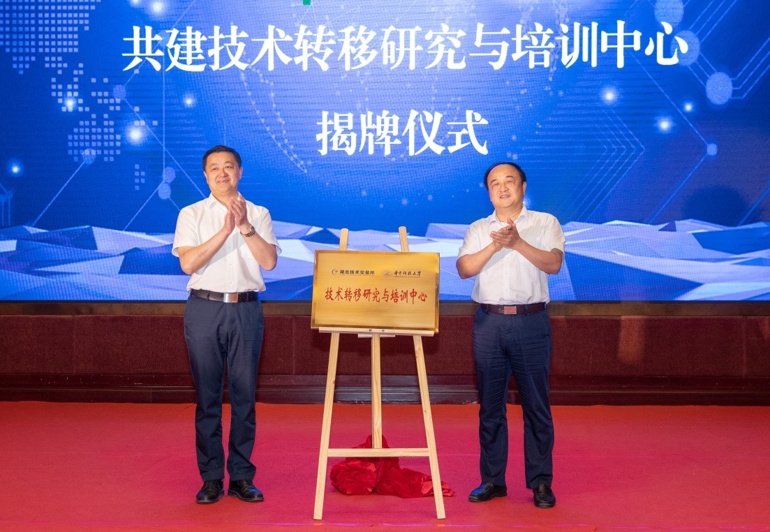 学校副校长、我院院长许晓东教授作大会致辞,代表威廉中国官方对本次发布会的隆重举行,湖北技术交易所-威廉中国官方技术转移研究与培训中心的正式揭牌,表示热烈地祝贺。他希望在省科技厅的指导和支持下,湖北技术交易所-威廉中国官方技术转移研究与培训中心快速步入健康发展的轨道,为湖北高质量发展贡献力量。他与省科技厅二级巡视员杨么明为技术转移研究与培训中心揭牌。