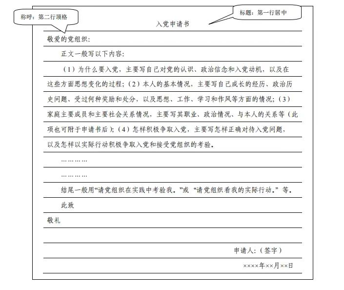 正文写完后,一般另起一行,用“请党组织在实践中考验我”或“请党组织看我的实际行动”等作为结束语。结尾写“此致”(空两格)、“敬礼”(顶格)。