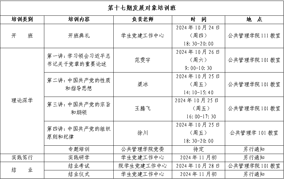 党课学习内容充实丰富,请各位学员协调好自己的时间。预祝大家圆满完成学习任务,顺利结业。