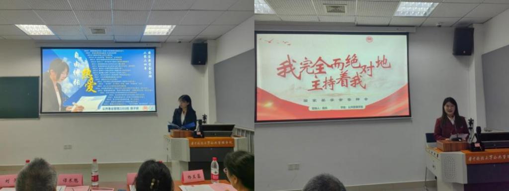 2023级本科生艾雅茹以“云程发轫,未来可期”为主题,讲述过去一年的成长故事,表达继续奋往直前的决心和勇气。2022级本科生刘亦菲讲述“跨越753天”,于沉潜往复中锻造学问、于服务奉献中提升自我、于实践探索中突破桎梏的成长。2021级本科生周子羽从“一个人的深耕”“一群伙伴的战斗”“一片森林的浪漫”三个方面,分享了他的深耕与收获。2023级本科生宋思涵展示了丰富多彩的学习生活,表达了“允许万物穿过,允许一切发生”的乐观态度。2022级本科生郭子妍既不断拓展视野的广度,又持续挖掘学习的深度,分享了自己潜心求索、厚积薄发的成长历程。2022级本科生阳乐分别从“求学”“求是”“求实”三个维度,展现了自己筑牢根基、不断向上的追求。2021级本科生张嘉欣讲述了她持续奋进的“热血大三”以及一往无前的保研之旅,她坚信“求知是一条只有起点而没有终点的路”。2021级本科生刘姝媛始终带着思考践行践悟,不怕失败努力向前,终于达成了自己的学业梦想。