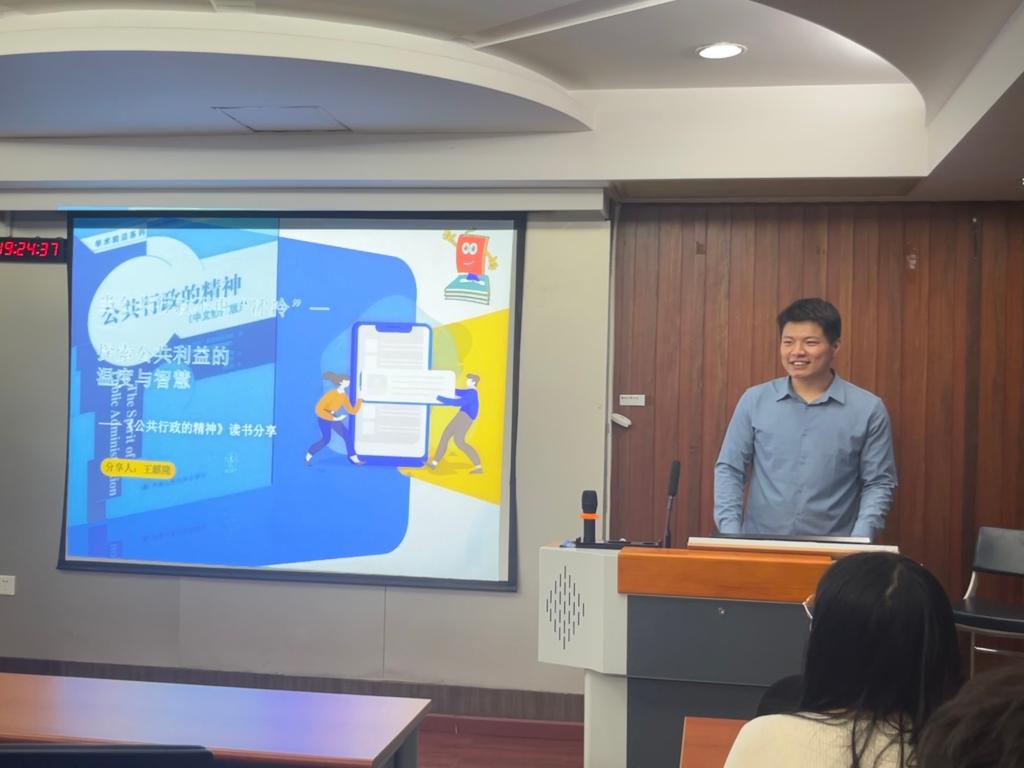王麒隆分享了《公共行政的精神》,以公共精神的三原色为切入口,从公共利益、社会公平、责任与义务三个层面强调了政府工作中“公平”这一概念的重要性。他通过展现公共精神随着时代发展所发生的变化,以纵向视角说明了其对于政府与人民的重要性与核心价值。