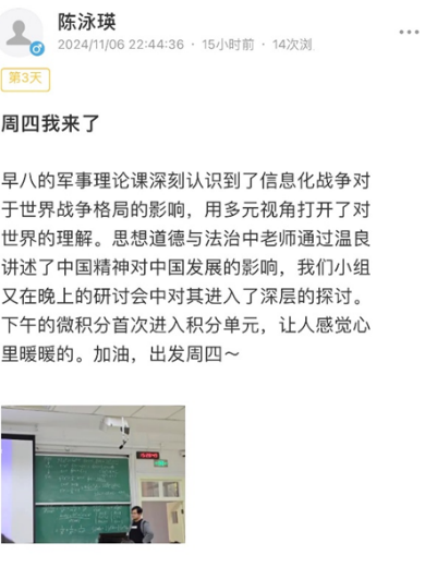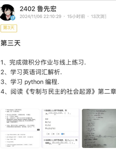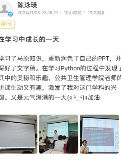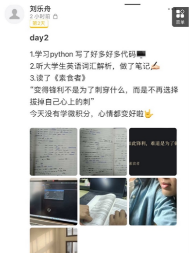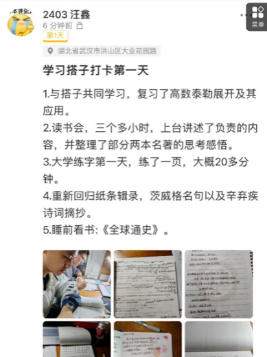 在“打卡留言板”上,同学们不仅可以展示学习笔记和心得,还能够围绕学习内容展开深入交流与探讨。不少同学提出困惑、寻求建议,也有同学分享克服困难的经验,以实际行动鼓励他人。大家点评互动,为活动注入了更多温暖与活力。