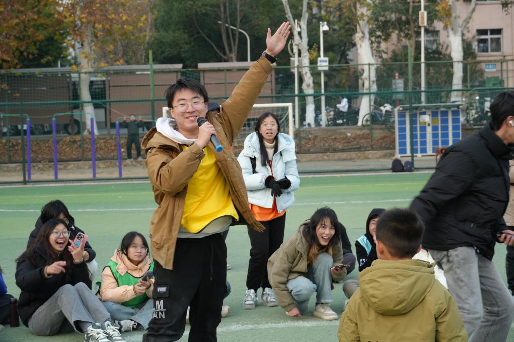 在公管学院曾牧航和机械学院樊家明两位主持人的带领下,两院团委学生会的成员们齐聚一堂。同学们被随机分成8个小组,各组成员相互配合、携手并进。在活力满满的游戏环节中,大家展开激烈角逐,不仅锻炼了个人的身体素质能力,更调动了团体合作的热情。