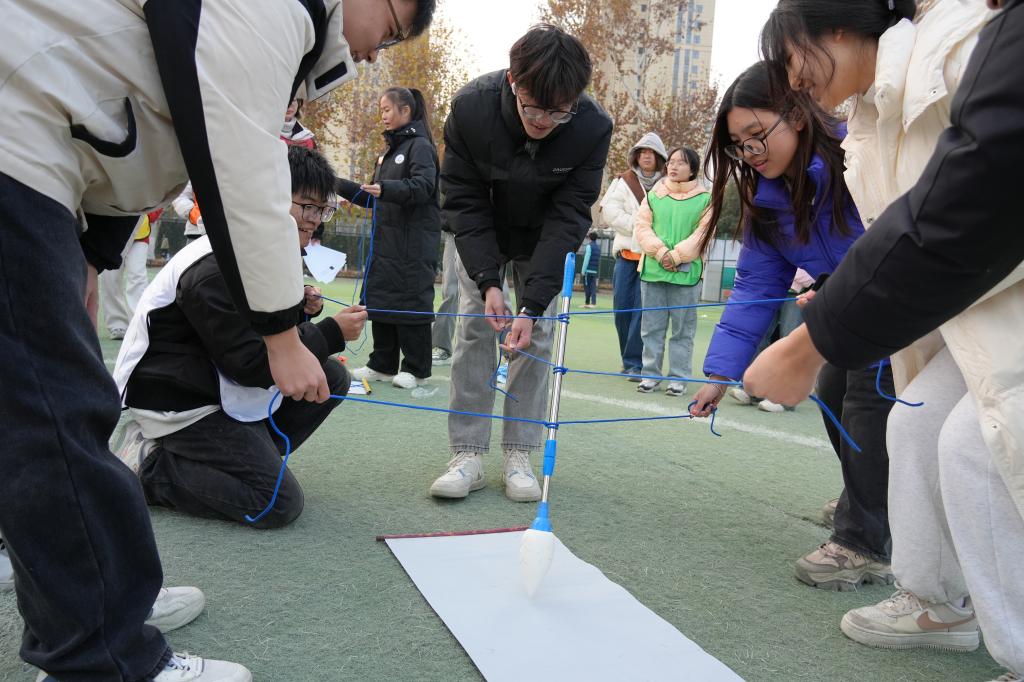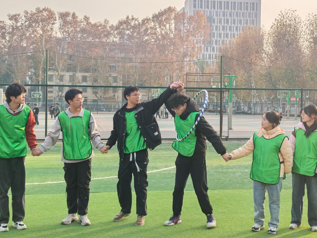 在同学们的欢呼声中,素拓活动正式拉开帷幕。“一圈到底”比赛中,大家围成圈传递呼啦圈,动作敏捷、配合默契;“默契传声筒”游戏里,同学们用无声的语言传递信息,欢笑声此起彼伏;“东南西北跑”则是一场体力与策略的较量,同学们勇敢上场,带着团队的期待进行激动人心的比试。