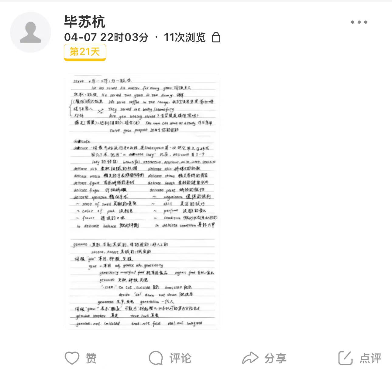 一开始只是抱着试试看的心态参加打卡,但坚持到最后一天时,回头看着那一张张上传的笔记,有种完成一项长期项目的满足感。平时觉得“坚持21天”很难,但当目标被拆分到每天,只需完成一个小任务,反而让我更容易行动起来。感谢这个活动,让我重拾对学习的掌控感。