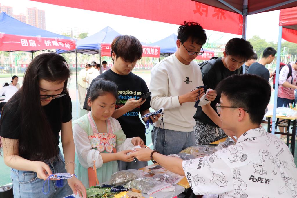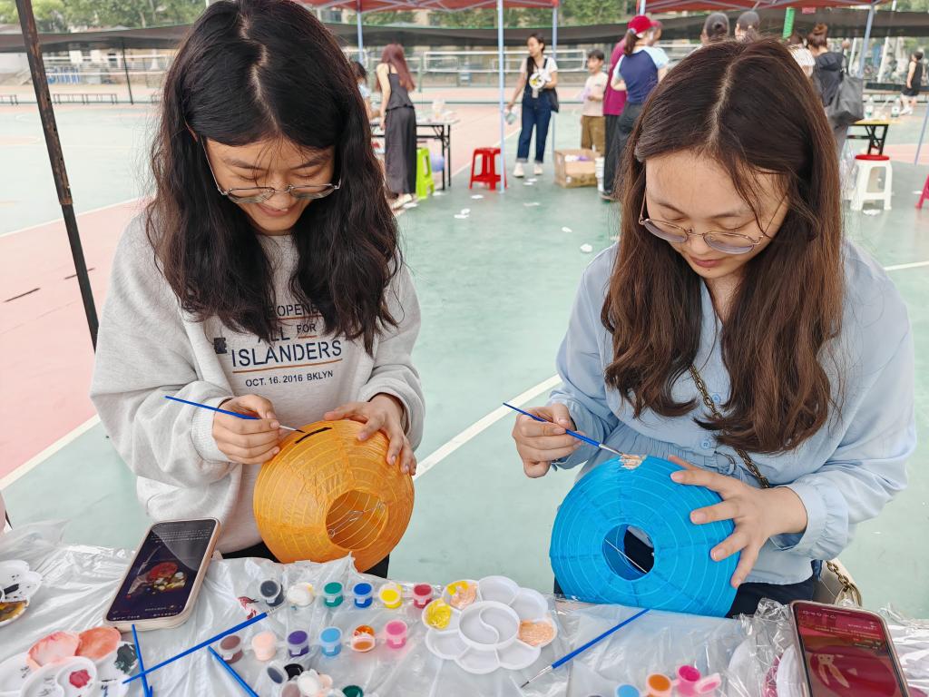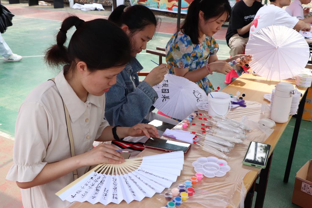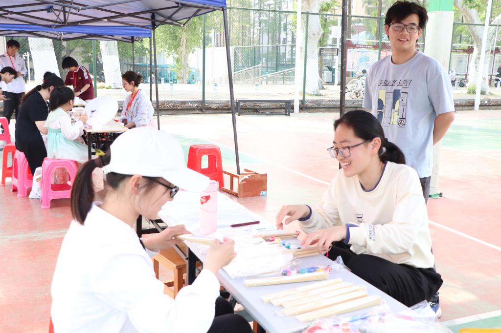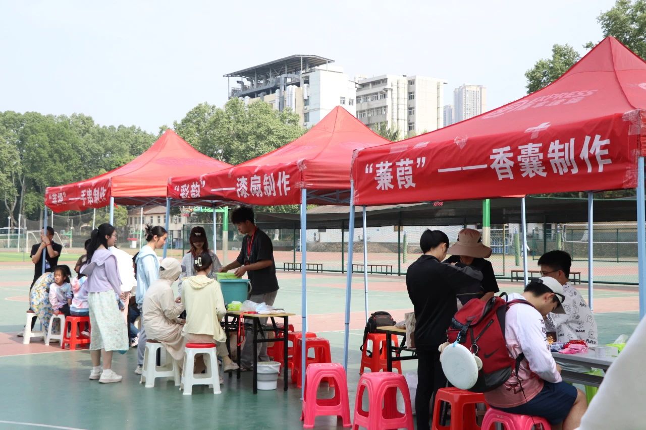 4月20日,活动于西操篮球场正式开始。现场设置9个摊位,包括漆扇、香囊、手串制作、灯笼、纸扇、脸谱彩绘等,各色非遗元素纷呈。活动参与达800余人次,他们驻足于各摊位,亲自动手体验制作或欣赏展品,感受传统文化的独特魅力。