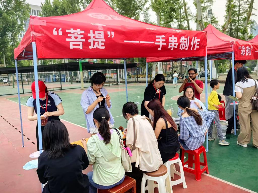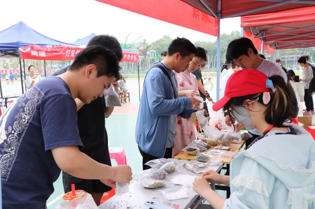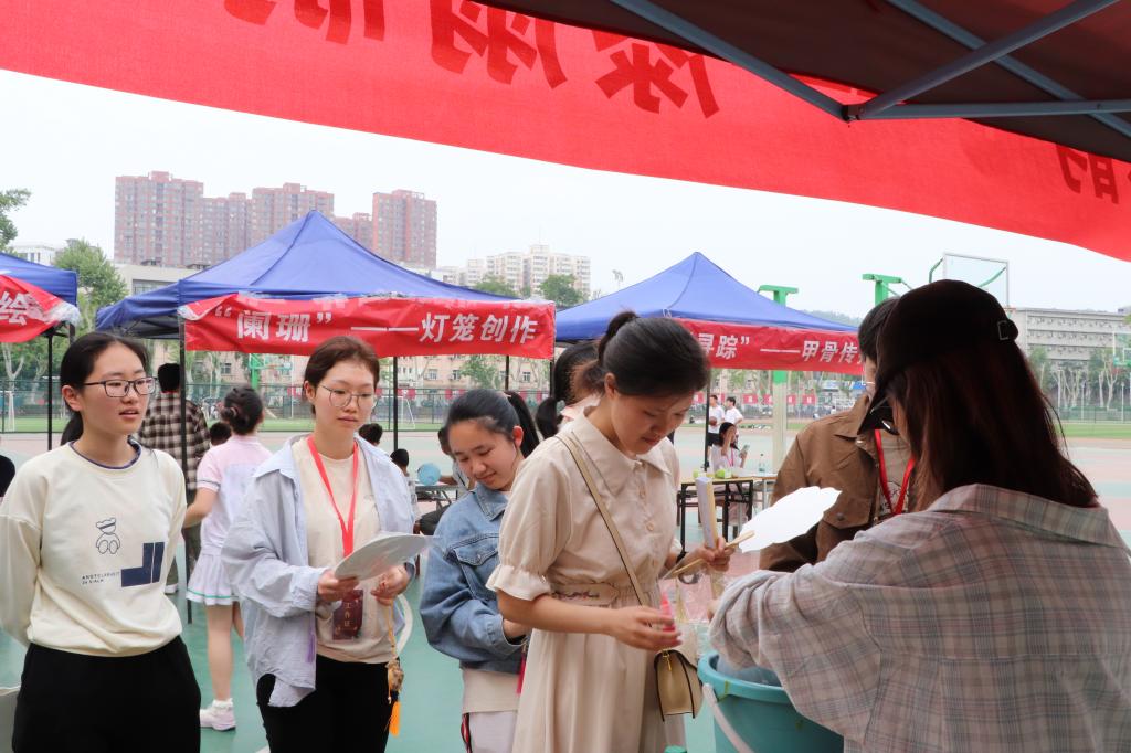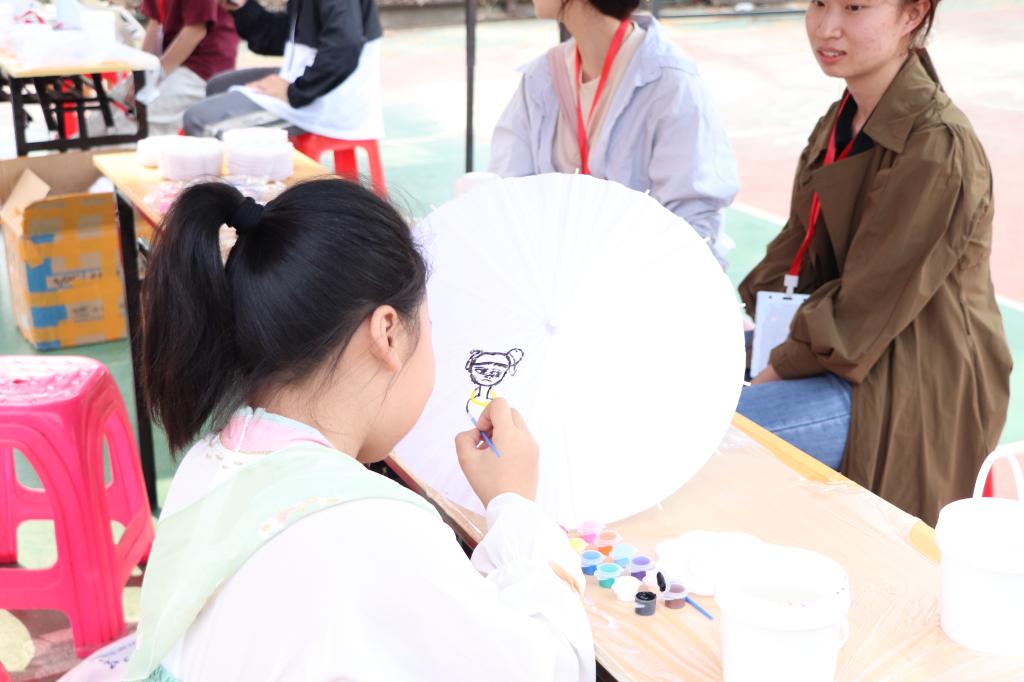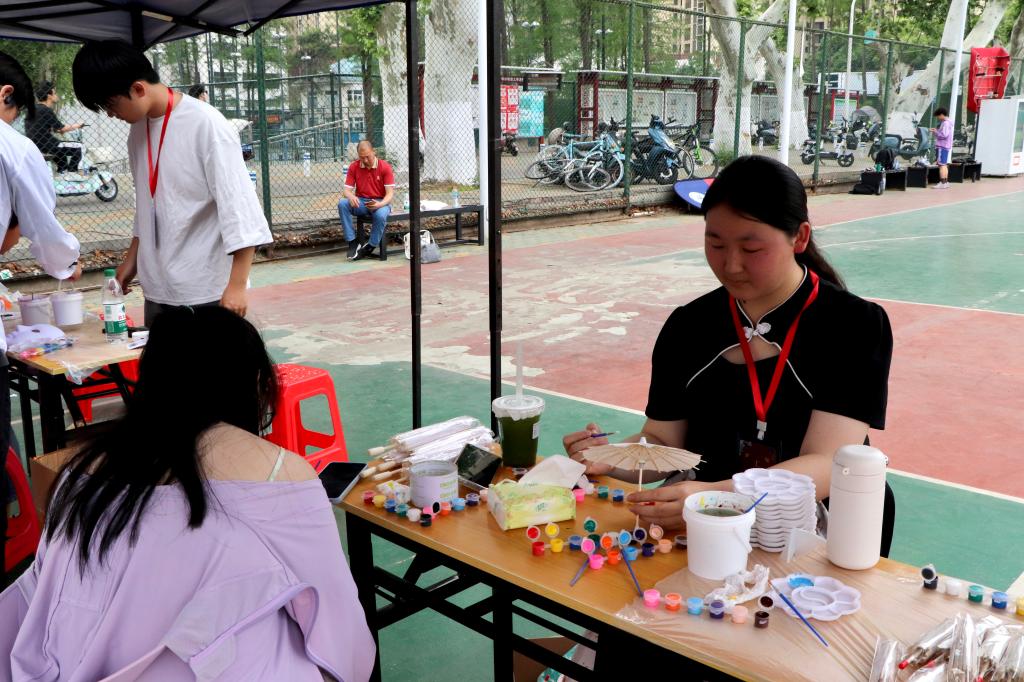 4月20日,活动于西操篮球场正式开始。现场设置9个摊位,包括漆扇、香囊、手串制作、灯笼、纸扇、脸谱彩绘等,各色非遗元素纷呈。活动参与达800余人次,他们驻足于各摊位,亲自动手体验制作或欣赏展品,感受传统文化的独特魅力。
