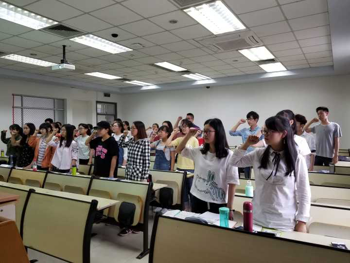 最后,全体团员进行了宣誓仪式。同学们严肃庄重地举起右拳,激情澎湃地重温了入团誓词。这是本次活动中最亮眼的一幕,相信同学们也能将这种激情带入今后的学习生活中,志存高远,脚踏实地,放飞青春梦想。