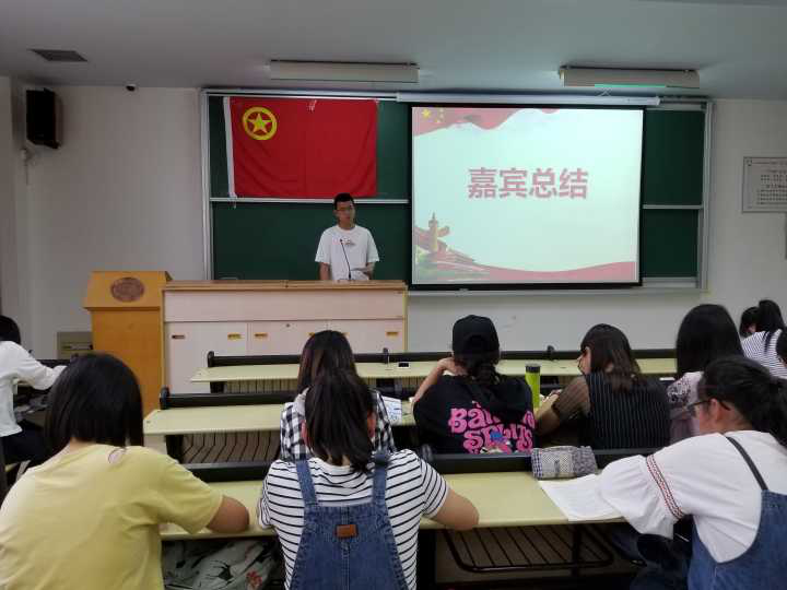 同学发言完毕后,分团副贾才鹏对同学们的发言做出总结,并结合十九大报告谈了谈对文化自信的重要意义。他认为,在新时代,我们青年需要有高度的文化自信,特别在对待一些社会热点问题时,不能被一些谣言扰乱视听与舆论。作为青年大学生,我们应该保持理性,不跟风盲从,对时事有自己的看法见解。