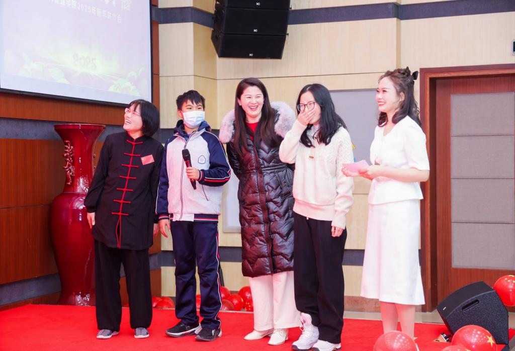 学院党委书记刘芳致辞。她首先转达了校党委常委、副校长许晓东对全院师生的亲切问候和新年祝福。随后,刘芳回顾了2024年学院在学科发展、人才培养、师资队伍建设等方面取得的发展成绩。她表示,2025年是“十四五”规划的收官之年和学校第五次党代会谋篇布局的开篇之年,学院将继续秉承立德树人根本任务,加强师资队伍建设,提升学科竞争力,为学校建设中国特色世界一流大学贡献力量,携手全体师生共创学院美好未来。