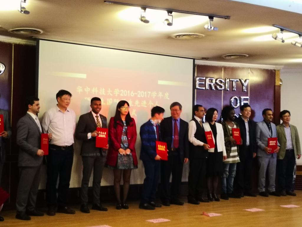 国际教育学院院长刘俊华宣读了《教育部国际合作与交流司关于公布2017年度中国政府优秀来华留学生奖学金获奖结果的通知》《威廉中国官方关于公布 2016 -2017学年度本科国际学生先进个人名单的通知》和《威廉中国官方关于公布 2016 -2017学年度国际研究生先进个人名单的通知》。与会领导为受表彰的优秀国际学生个人颁发了荣誉证书并合影留念。