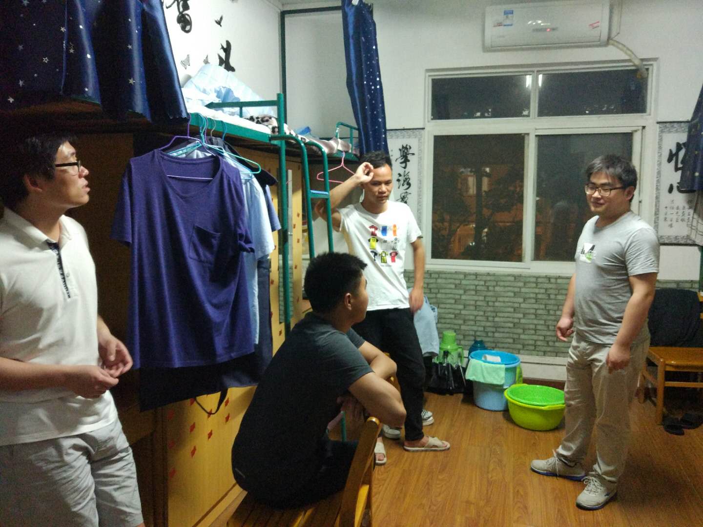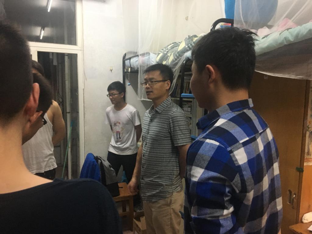 6月2日周六晚10:00,学院党委副书记童文胜带领学生工作办公室本科生辅导员徐川,本科生行政党支部书记陆逊、学生会主席牛琳、分团委副书记贾才鹏等一起抽检了学院所有男生宿舍,对于卫生状况和潜在的安全隐患进行了重点检查,同时也了解了所到宿舍的基本情况,并对部分宿舍学生的仪容仪表和礼仪进行了一定的指导。
