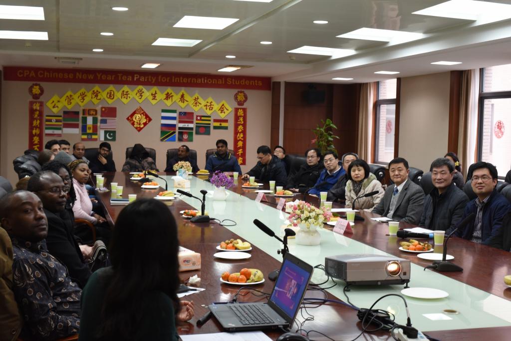 为关心寒假留校国际学生,1月29日我院为国际学生举办新春茶话会。学校副校长兼学院院长许晓东教授,学校国际教育学院书记王恭南,国际教育学院书记留学生办公室主任兰行行、黄超、严薇,以及学院书记马冬卉、副书记童文胜,副院长谭术魁、张毅,国际学生导师王冰、王国华、曾忠平、杨兰蓉、陈诚,国际学生辅导员张媛等参加了此次活动。