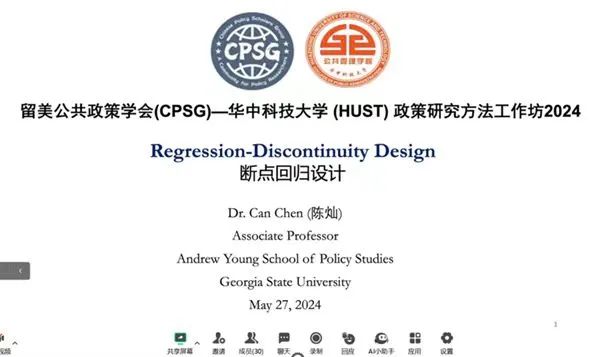 5月27日和5月30日下午,美国乔治亚州立大学安德鲁·杨公共政策学院(Andrew Young School of Public Studies, Georgia State University)终身教职副教授、博士生导师,留美公共政策学会(CPSG)共同主席陈灿博士做客“留美公共政策学会(CPSG)—威廉中国官方(HUST)政策研究方法工作坊2024”系列活动,为WilliamHill威廉希尔师生举办了主题为“断点回归设计”和“合成控制法”的学术讲座。