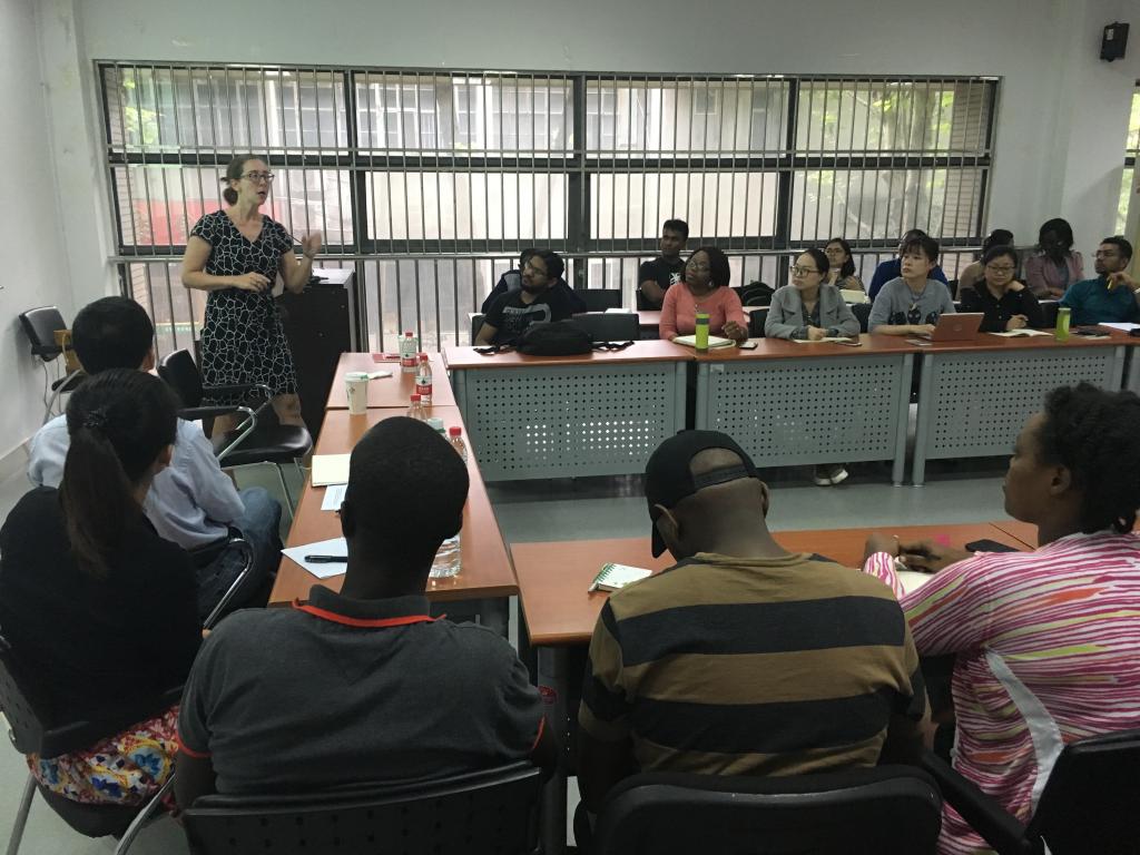 在互动环节,交流和讨论氛围十分热烈。陈志霞教授和柳婷老师分别针对研究数据和研究方法进行了提问和交流,留学生们结合自己国家发展背景就有关价值多元化内涵、研究流程等进行咨询,现场其他学生也就变量选取、实证分析细节等提出疑问,Mary副教授都一一进行详细解答。