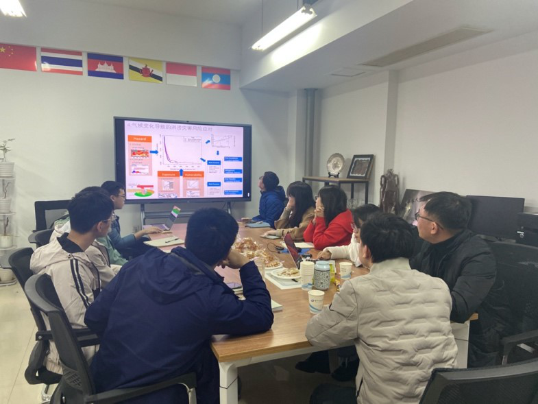 黄栋教授对两位老师的到来表示热烈欢迎,他介绍了中心的建设历程以及近年来的发展情况和研究领域。蒋新宇副教授与杨丽娇副教授随后介绍了各自近年来在洪涝灾害风险管理领域取得的系列研究进展以及国际前沿研究重点方向。