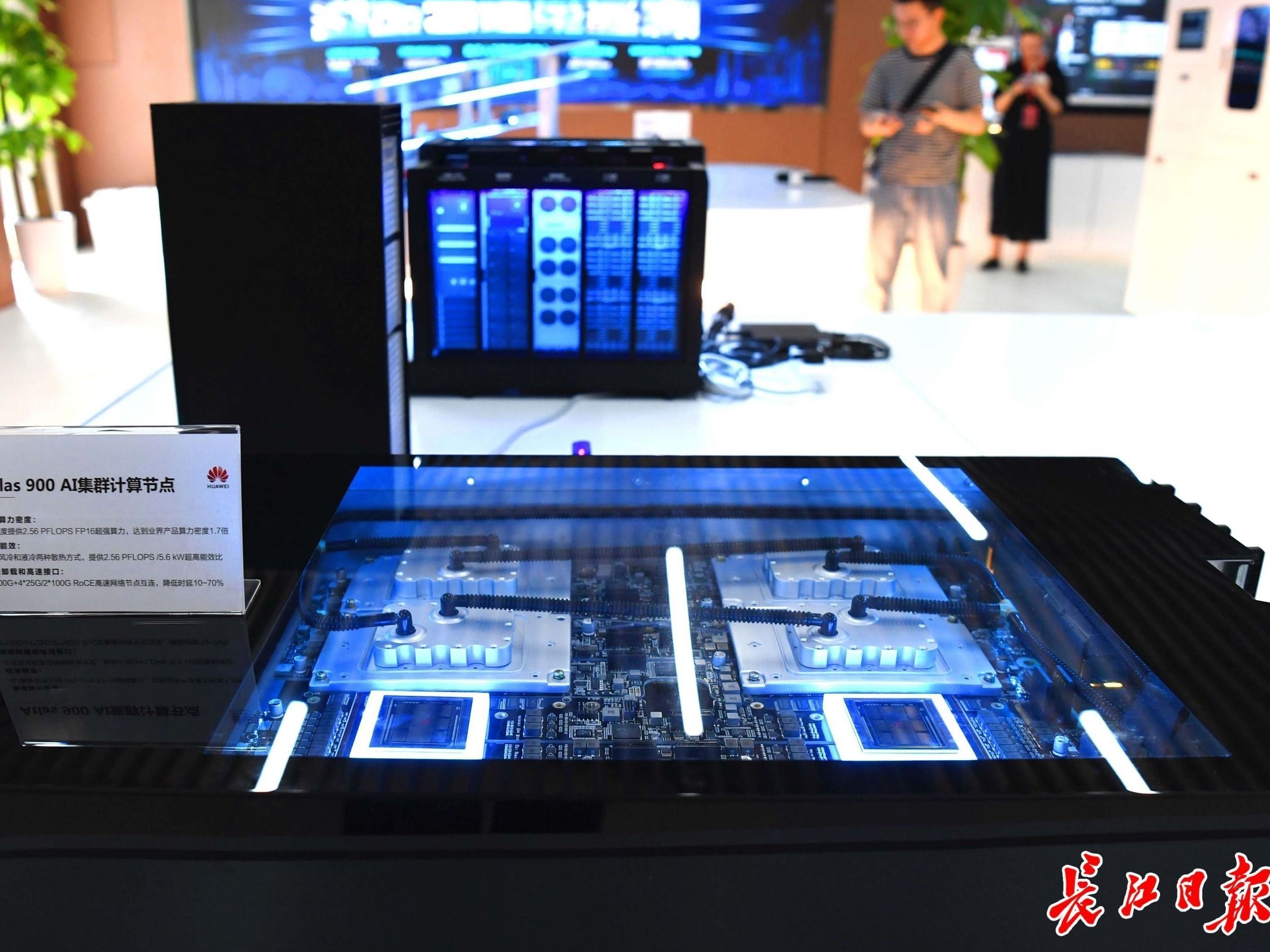 武汉人工智能计算中心大厅陈列的智能科技产品(资料图)。长江日报记者高勇 摄