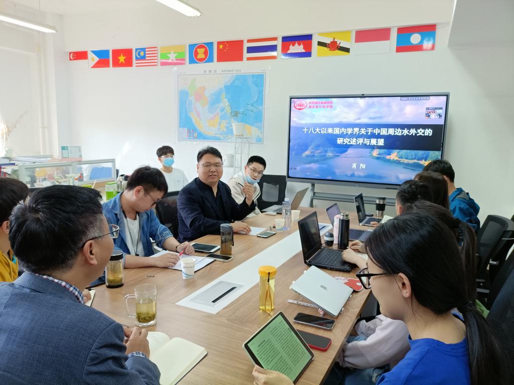 四位主讲人结合研究经历,介绍了自身最新的研究成果。肖阳博士以《十八大以来国内学界关于中国周边水外交的研究述评与展望》为题,对中国周边水外交的研究缘起、理论探索、区域实践、国外水外交的经验启示进行了阐述。他表示,在全球水资源危机的背景下,作为一种预防和化解跨界水资源冲突的新兴外交方式,“水外交”以其独特作用和战略意义受到国际社会的广泛关注和重视。党的十八大以来,国内学界对中国周边水外交相关问题进行了大量探讨,为中国开展周边水外交提供了一定的理论支撑、战略引领和实践指导。肖阳认为,未来中国周边水外交研究,一是要重视水外交的基础理论研究,对水外交的主体构成、功能属性、推进路径以及遵循的国际法原则等本体性问题进行深入探讨,二是要拓展中国周边水外交研究视野,加强中国与周边国家的水历史研究以及水外交相关跨学科研究,三是要创新中国特色周边水外交话语,对自身开展周边水外交实践作出充分合理的阐释,深度融入和积极服务国家外交大局。