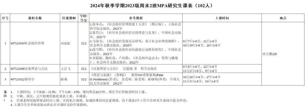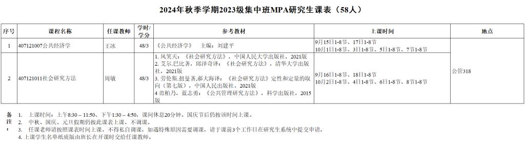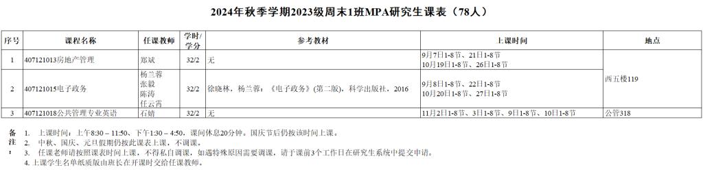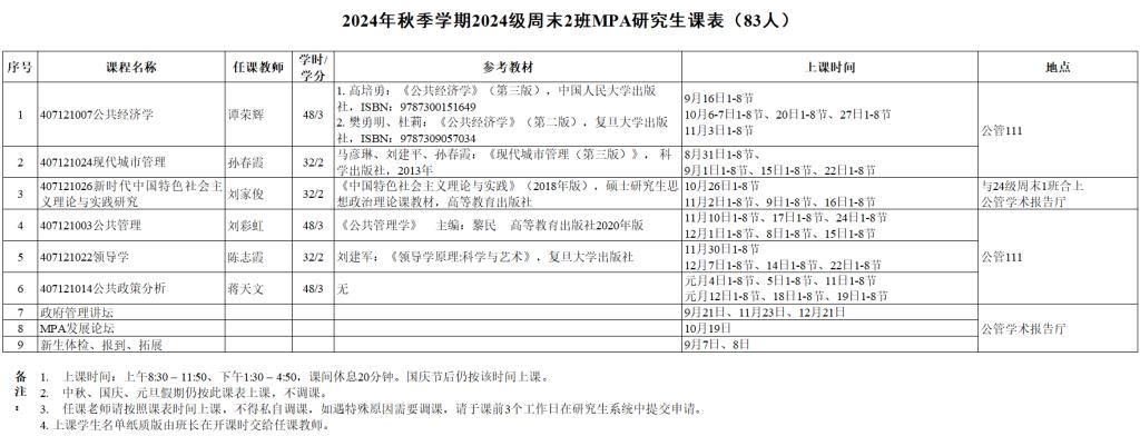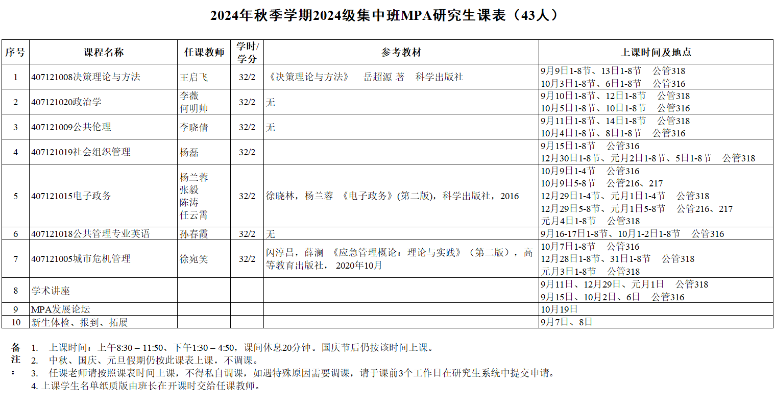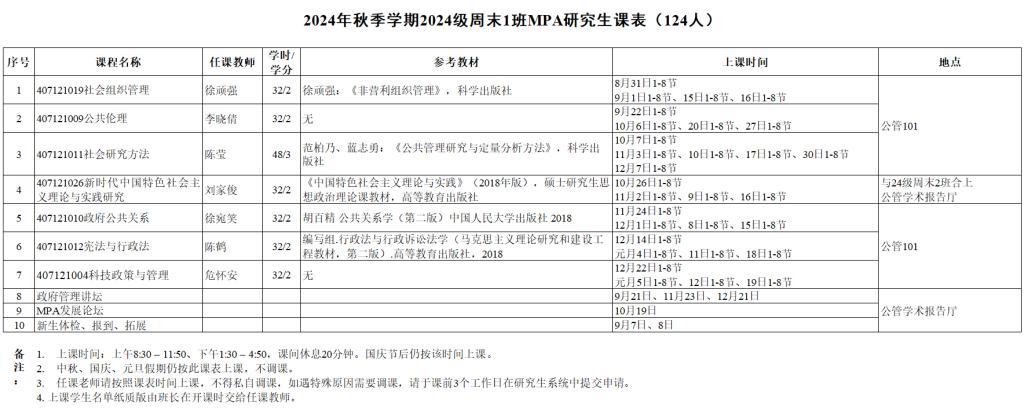 WilliamHill威廉希尔MPA研究生2024年秋季课表